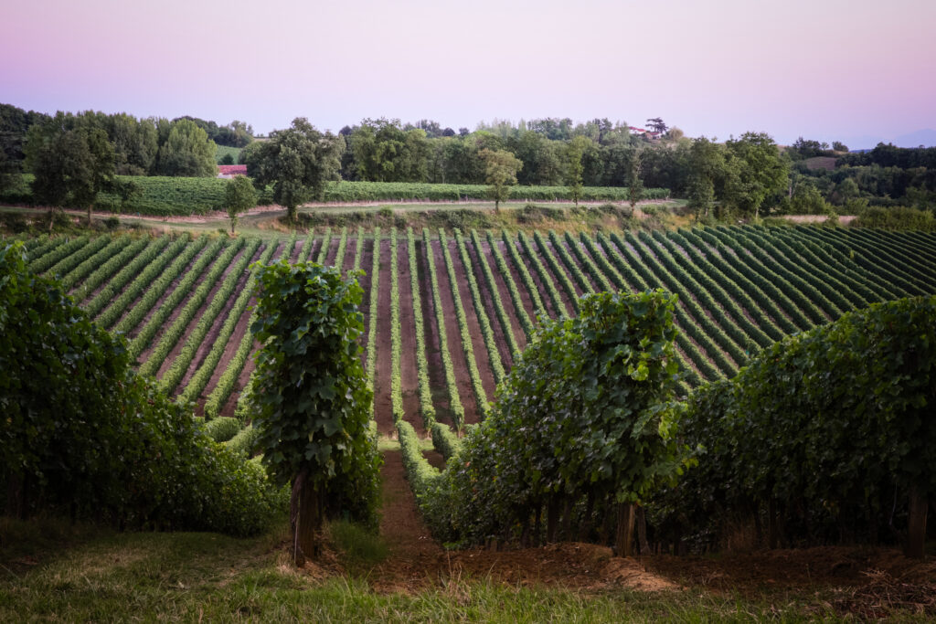 Les vignes de Petit et Gros Manseng, dont les raisins vendangés en sur-maturité permettent d’élaborer des vins moelleux d’une grande finesse, sont plantées sur les sables fauves profonds du domaine.